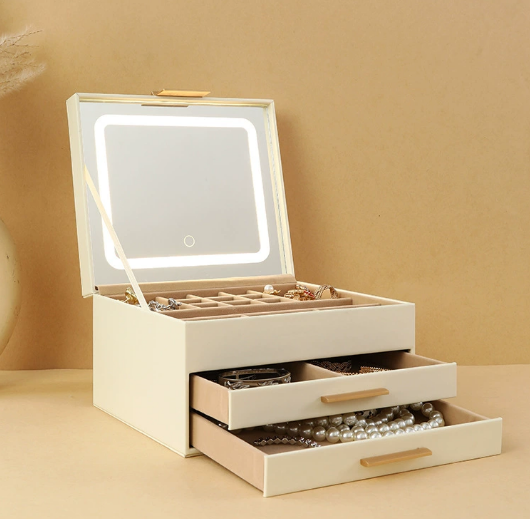 Cadeau surprise : Grande boîte à bijoux avec miroir et LED pour toute première inscription !